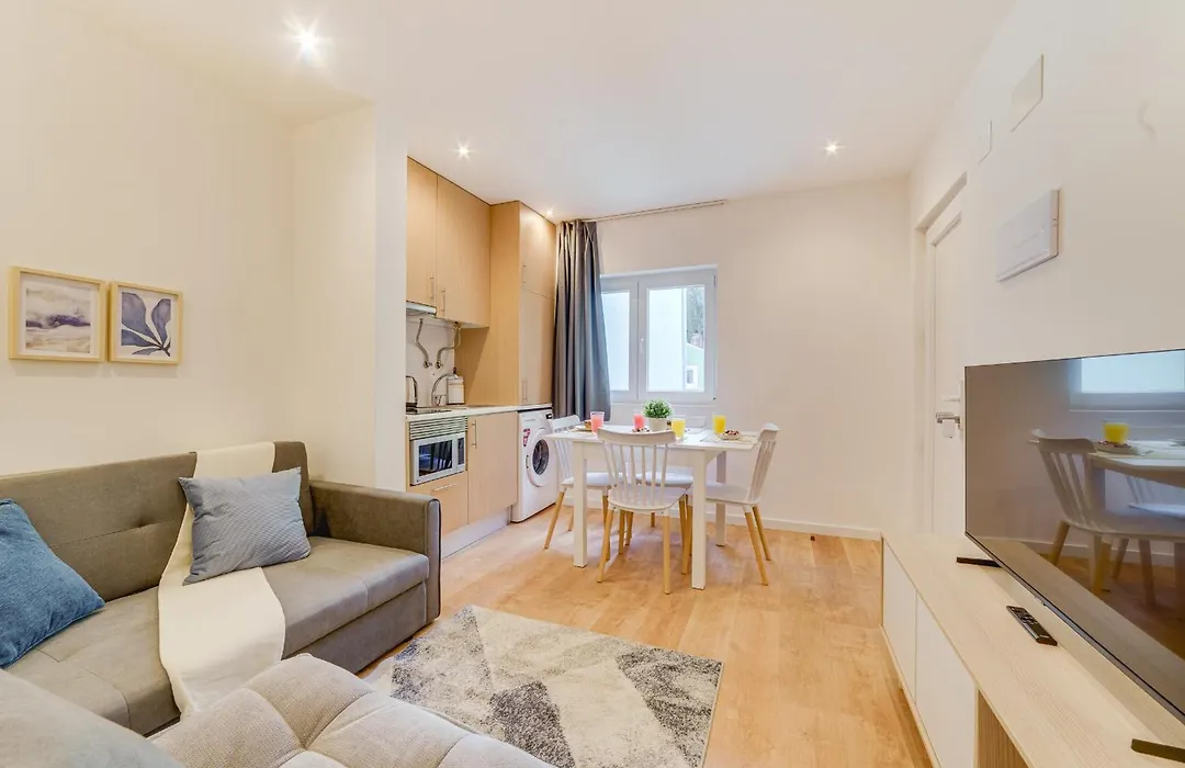 Yellow Charm - Campolide Apartments, di 35 m^2, comprende un salottino e offre comfort come un impianto di climatizzazione, oltre a un televisore multicanale e una TV a schermo piatto con canali satellitari. Finestre insonorizzate, oltre a un divano e uno scrittoio, assicurano un soggiorno più piacevole. L'alloggio ha 1 camera da letto. Ci sono 1 bagno con un bagno alla francese e una doccia e anche asciugacapelli e teli da bagno.